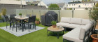Beide Schlafzimmer und das Wohnzimmer haben Zugang zu der Innenhof-seitigen Dachterrasse.