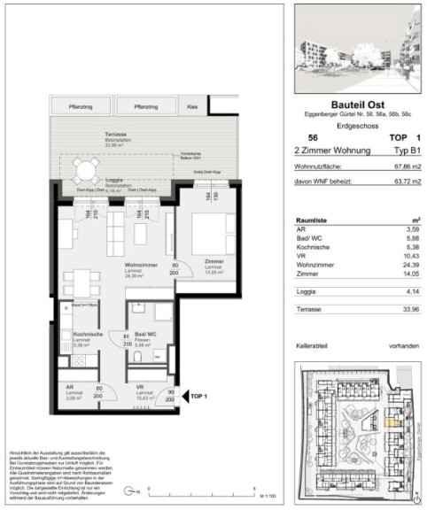 Diese attraktive 2-Zimmer-Wohnung mit ca. 67,86 m2 Wohnfläche bietet modernen Wohnkomfort und eine ideale Raumaufteilung- Vorraum