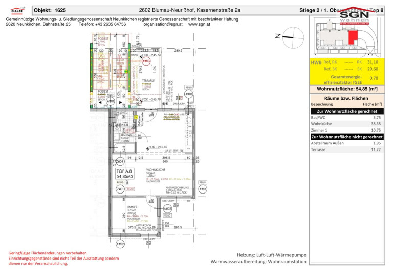 Willkommen in Ihrer neuen Traumwohnung in Blumau-Neurißhof, Niederösterreich! Diese neuwertige Genossenschaftswohnung bietet Ihnen auf großzügigen 54,85 m² alles, was das Herz begehrt und ist perfekt für Singles, Paare oder kleine Familien.