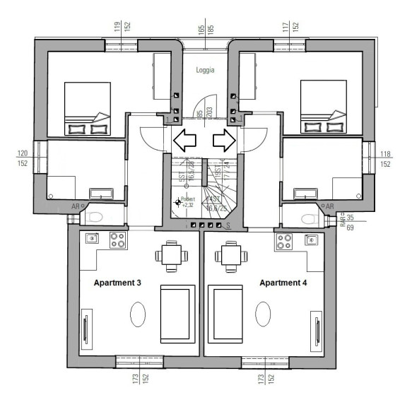 1.Stock - Top 3: Wohnung 45 m², Apartment 4