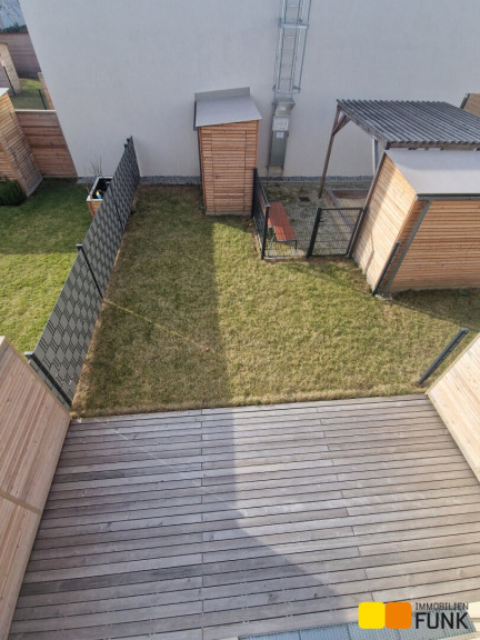 Das Reihenhaus 14 befindet sich in der Herrenholzgasse 5, 1210 Wien und wird auf einem ca. 128 m² großen Eigengrund errichtet. Seinen künftigen Bewohnern bietet es zudem eine komfortable Wohnfläche im Ausmaß von insgesamt ca. 114 m², angeordnet auf zwei Geschoßen mit 5 Zimmern, 2 Toiletten, einem großen Badezimmer, dem Technikraum und zwei Abstellräumen, sowie einer westseitig ausgerichteten Terrasse mit ca. 13 m², die sich zu einem gemütlichen Gartenbereich mit ca. 34 m² öffnet. Diesem Reihenhaus ist ein Parkplatz in der Nähe des Objekts zugewiesen. Der Kaufpreis für den KFZ-Platz beträgt 19.000,00 € .