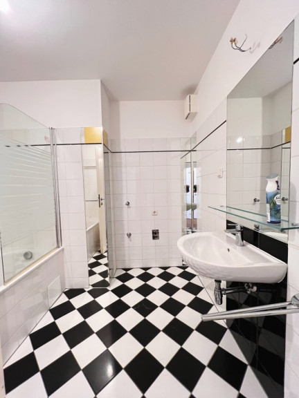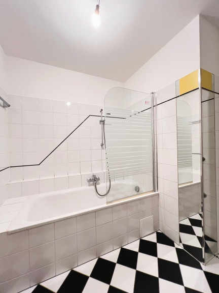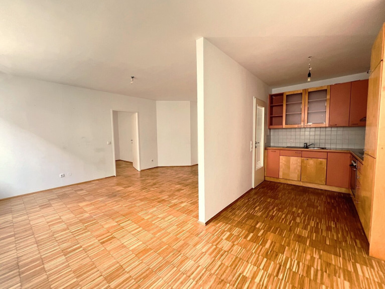 Die Wohnung besticht durch eine helle Wohnküche mit Einbauküche, die offen gestaltet ist, einem geräumigen Schlafzimmer mit genügend Platz für ein großes Doppelbett und Schränke. Das Badezimmer ist mit einer Badewanne ausgestattet – ideal für entspannende Momente nach einem langen Tag.