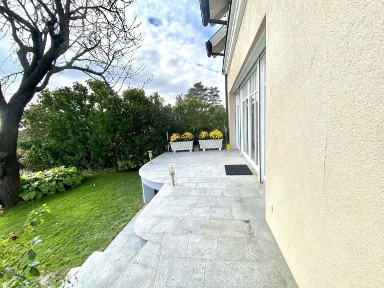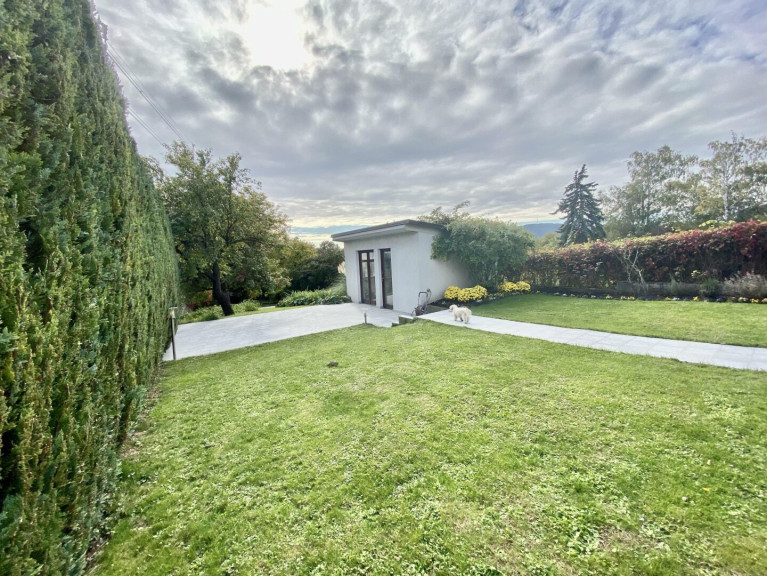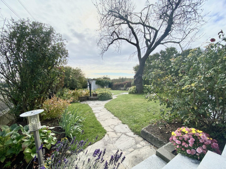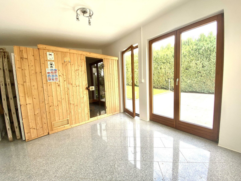 Der Garten besticht durch seine Vielefalt an Rosen, Lavendel, Lilien, blühenden Hecken und Obstbäumen. Eine Beregnungsanlage und ein autom. Rasenmäher (Husquarna) sind vorhanden. Im Garten steht ein Saunahaus mit Sauna- und Infrarotkabine zur Enstspannung bereit. Vor dem Saunahaus ist eine große uneinsehbare Terrasse. Gartenbeleuchtung und indirekte Pflanzenbeleuchtung sind vorhanden und schaffen eine Wohlfühlatmosphäre. Der Belag im Garten ist Granit.