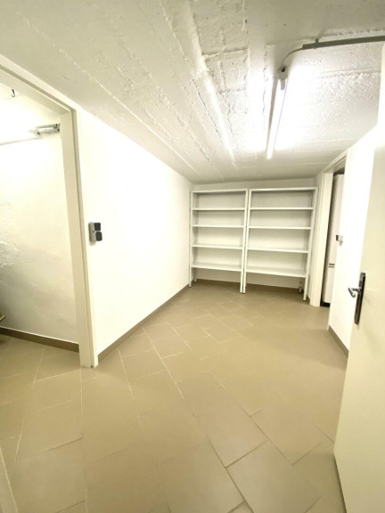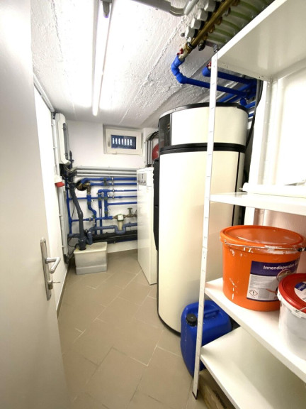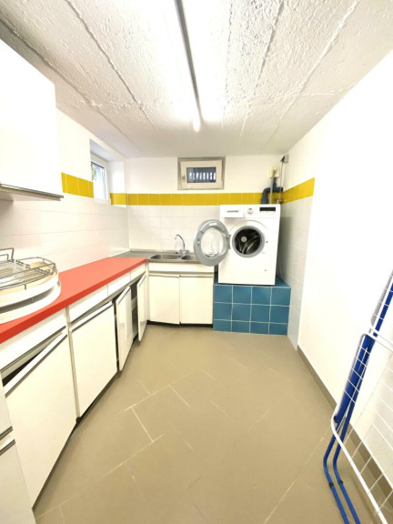 Der Wirtschaftsraum im Keller ist möbliert, eine Waschmaschine ist, falls gewünscht, vorhanden. Der Keller ist mit Feinsteinzeugfliesen verfliest.