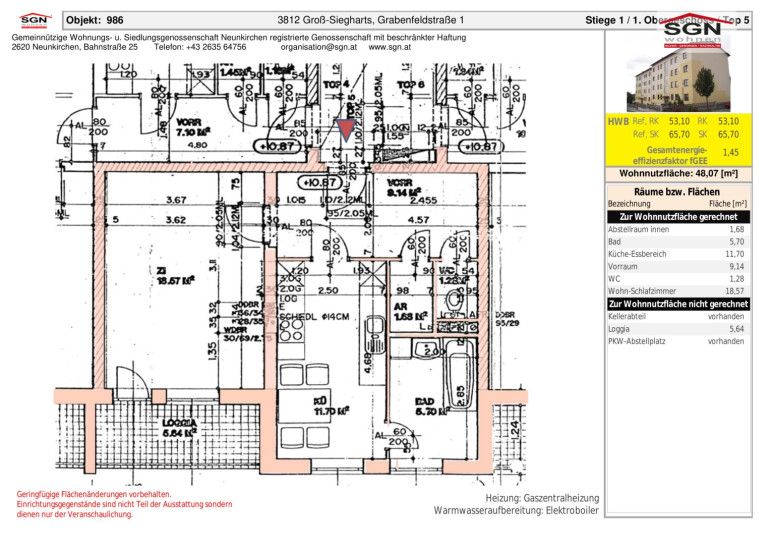 | Heizwärmebedarf: | 65,70 kWh/m²a |