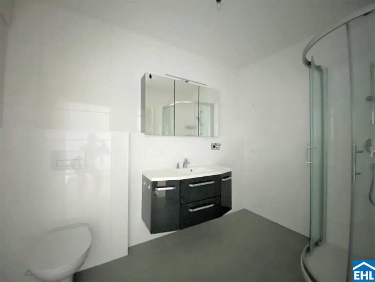 - Badezimmer mit Dusche und Waschmaschinenanschluss