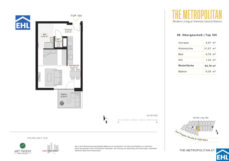 Die nahegelegene Shoppingmall und der neu errichtete Hauptbahnhof, machen „The Metropolitan“ zu einem einzigartigen Wohnerlebnis.