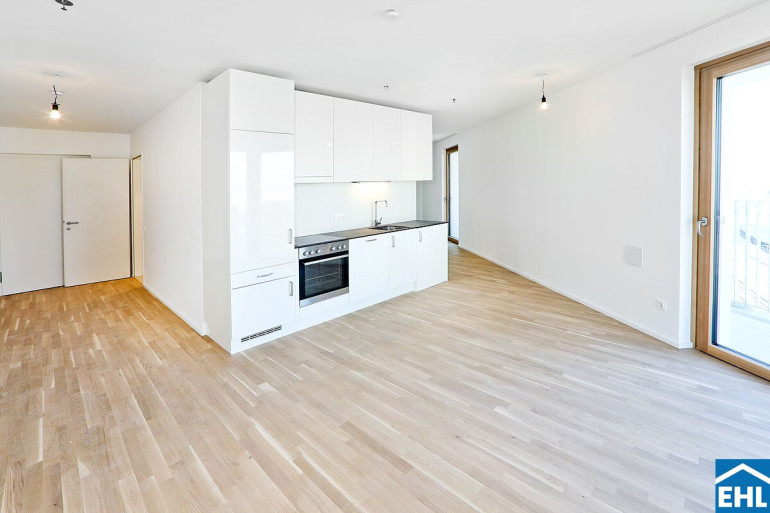 Die Wohnung selbst unterteilt sich in eine großzügige Wohnküche mit Schlafbereich und Zugang zum Balkon, ein Badezimmer mit Dusche, ein separates WC, sowie einen Vorraum. Der große Balkon lädt zum gemütlichen Verweilen ein.
