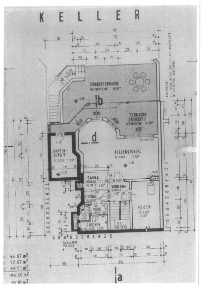 UNTERGESCHOSS: Gästewohnung: Wohnzimmer mit Kamin und Ausgang in den Wintergarten, Schlafzimmer, Schrankraum; große Sonnenterrasse – teilweise überdacht Vorraum, Sauna, Bad mit WC, Heizraum, großer Abstellraum;