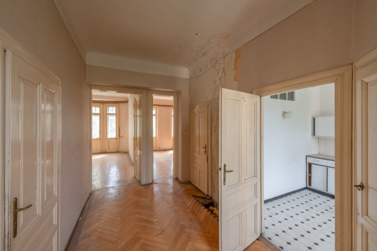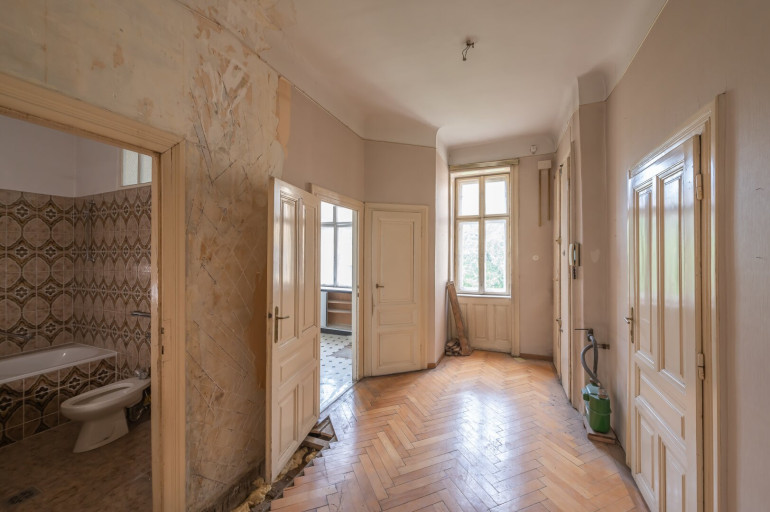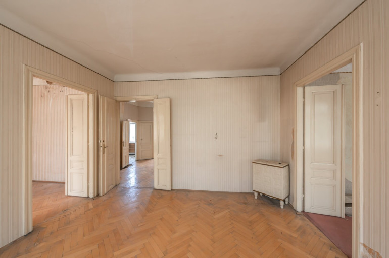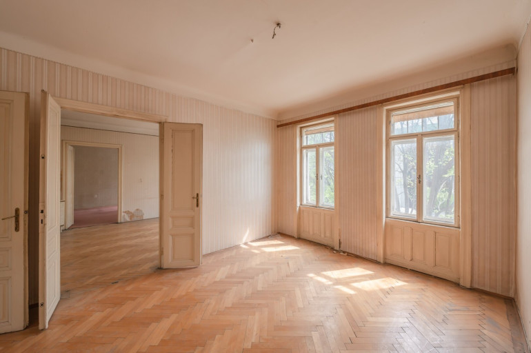 Die Wohnung befindet sich in einem sanierungsbedürftigen Zustand und bietet sehr viele Elemente eines Stilaltbaus: