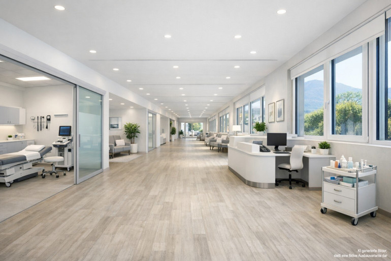 Die mietgegenständliche Büro - / Gewerbeeinheit verfügt über 264,70 Quadratmeter und hat zwei Eingänge. Es könnte auch die gesamte Stockwerksfläche mit rund 465 Quadratmetern angemietet werden.
