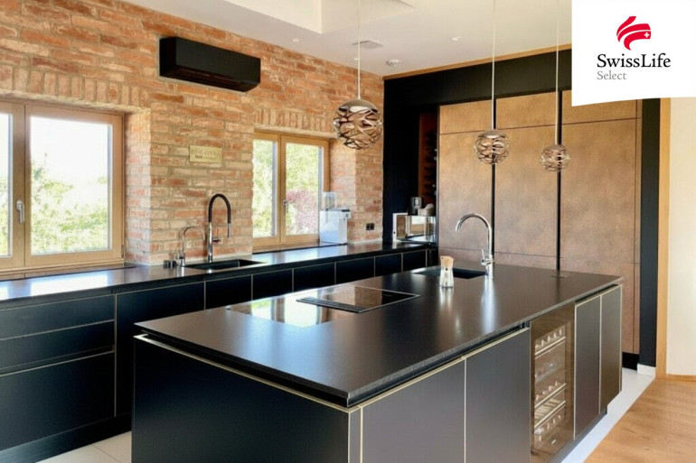 Herzstück ist der große Wohnsalon. Hier bilden Wohnküche, Essbereich und Wohnbereich mit offenem Kamin ein harmonisch abgestimmtes Ensemble, das alleine schon rund 75 m² umfasst und bereits beim Betreten zu beeindrucken versteht.