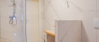 Auf der linken Seite des Bungalows befinden sich zwei Schlafzimmer sowie ein Badezimmer mit Dusche. Das großzügige Schlafzimmer bietet eine angenehme Rückzugsmöglichkeit, während sich das zweite Zimmer flexibel als Gästezimmer, Kinderzimmer oder Homeoffice nutzen lässt. So entsteht ein stimmiges Wohnkonzept, das praktische Alltagstauglichkeit mit behaglichem Wohngefühl und direkter Nähe zum Garten auf besonders angenehme Weise verbindet.