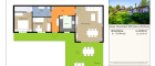 Ergänzt wird das Ensemble durch einen schönen, ebenerdigen Bungalow mit praktischer Raumaufteilung. Beim Betreten des Bungalows befindet sich auf der rechten Seite zunächst die Küche, deren Fenster nach außen für Tageslicht sorgt und eine angenehme, gemütliche Atmosphäre schafft. Das Herzstück bildet der großzügige Wohnbereich, der sich direkt zum Garten und auf die angelegte Terrasse öffnet.