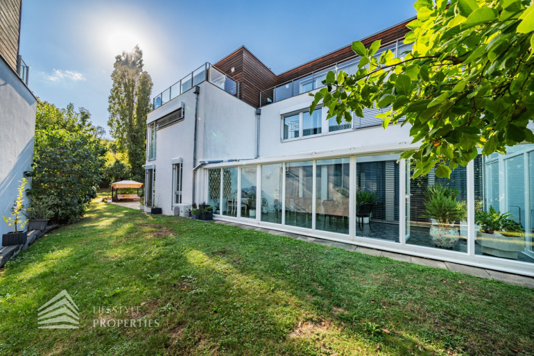 Zum Verkauf gelangt eine atemberaubende Villa mit Blick über Wien und Weingärten im 19. Wiener Gemeindebezirk bei Neustift im Walde.