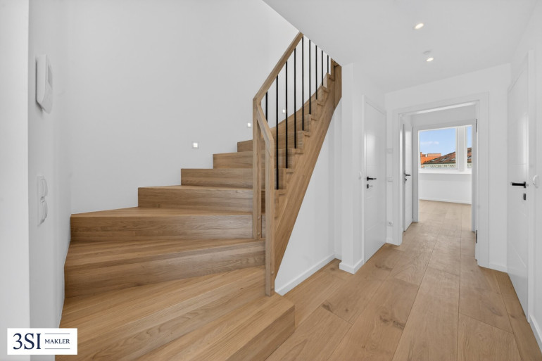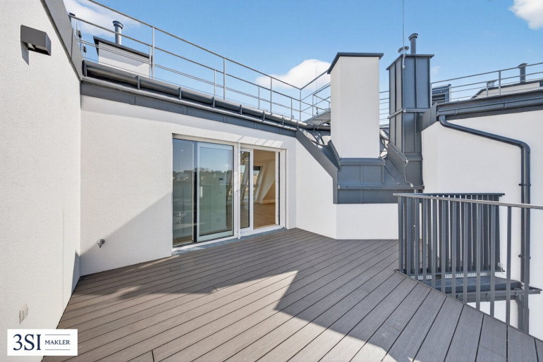 In dieser knapp 124 m² Dachterrassen-Maisonette sind Sie „on top“. Einen Großteil der Wohnfläche, mehr als 50 m², nimmt Ihre exklusive Wohnküche ein. Eine großflächige Fensterfront trennt diese von Ihrer neuen süd-west-seitigen 17 m² Holz-Terrasse. Stellen Sie sich vor, wie im Frühjahr Ihre Pflanzen grünen und blühen. Drei geräumige Schlafzimmer, zwei Bäder, zwei Toiletten und ein Abstellraum vollenden Ihren Wohnkomfort auf zwei Wohnebenen.