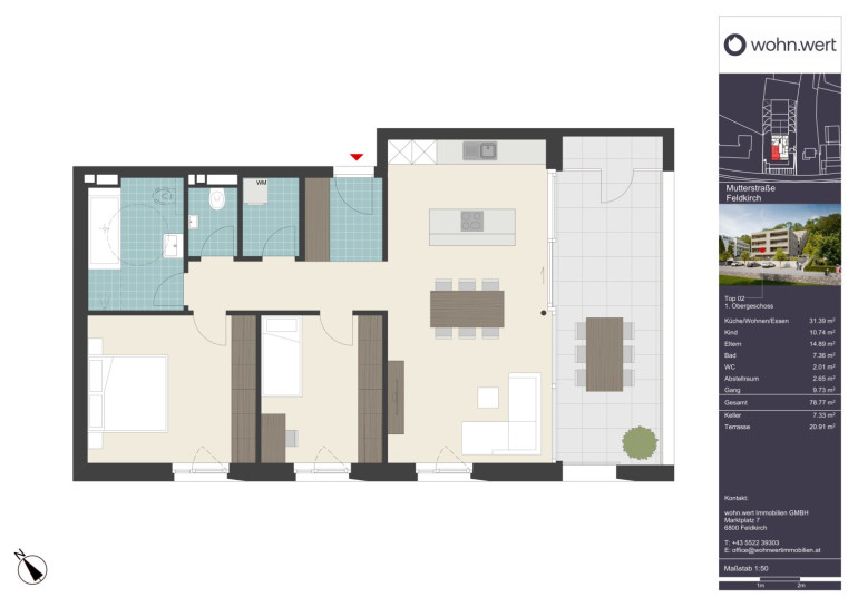 Mit 2-4 Zimmerwohnungen, nahezu alle mit großzügigen und überdachten Terrassen, erwartet Sie hier ein vielseitiges Angebot, das jedem Bedürfnis gerecht wird. Als Krönung erwartet Sie ein beeindruckendes Penthouse mit 170 m² Wohnfläche, 5 Zimmern und einer atemberaubenden 135 m² großen Terrasse.