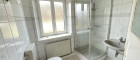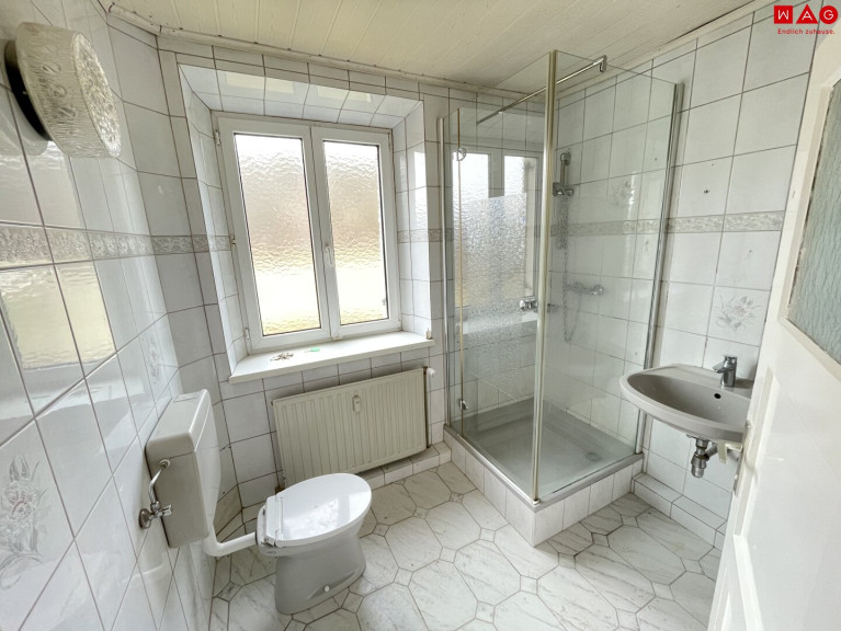 - Badezimmer mit Dusche, Tageslichtfenster und WC