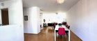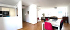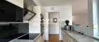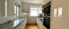Die offene moderne Küche ist durch eine Durchreiche und Schiebetür, mit dem Wohnesszimmer verbunden.