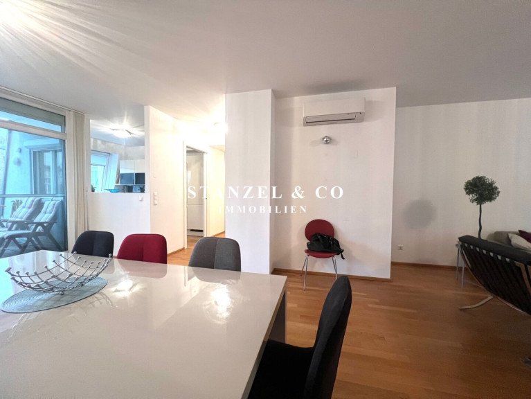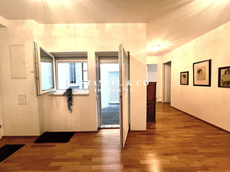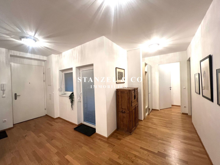 Vom 20m² großen Vorzimmer gelangt man durch eine raumhohe schöne Glastüre in das sehr große Wohnesszimmer mit anschließender 10,28m² großer Innenhofterrasse inkl. Loggia und offener Küche. Die schöne 10m² große Außenfläche ist zum Teil überdacht.