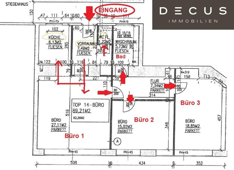 - 3 Büroräume (1 davon zentral über den Vorraum begehbar)
