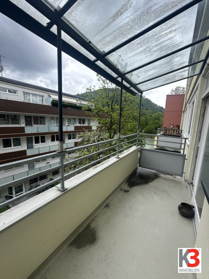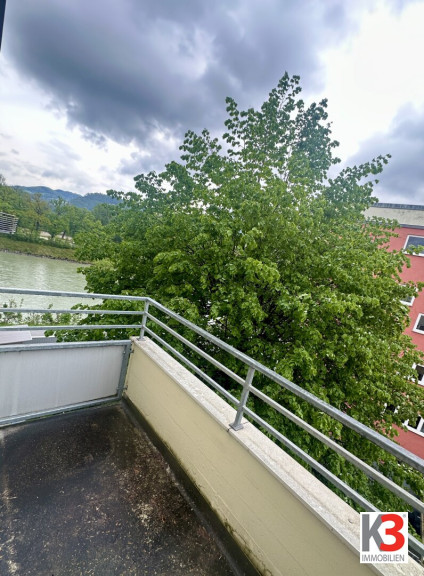 Von den beiden Balkonen aus genießen Sie einen Blick ins Grüne, die Salzach sowie wie einen Fernblick aufs Gebirge samt Stadtblick.