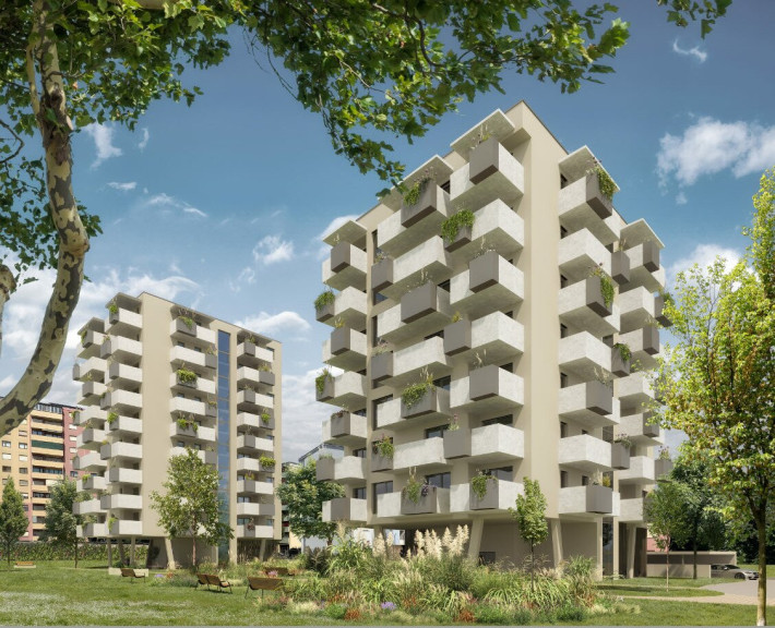Haus 1 bietet 42 Wohneinheiten aufgeteilt auf sieben Geschoßen. Haus 2 besteht aus 38 Wohneinheiten verteilt auf neun Geschoßen.