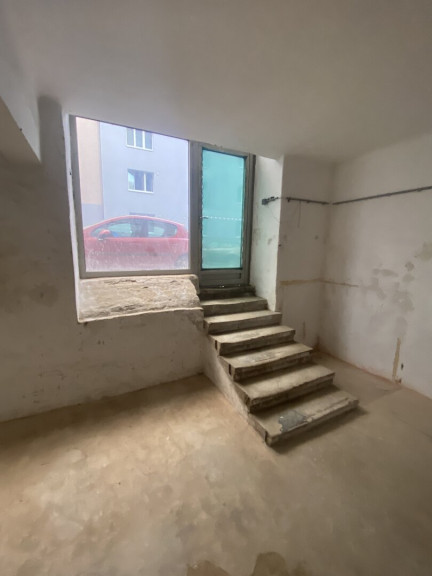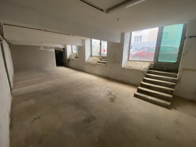 - Großer Raum an der Straße, derzeit mit einer Rigipswand geteilt
