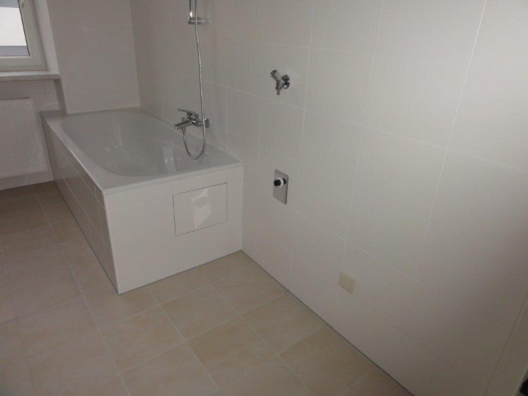 - Badezimmer mit Badewanne und Waschmaschine