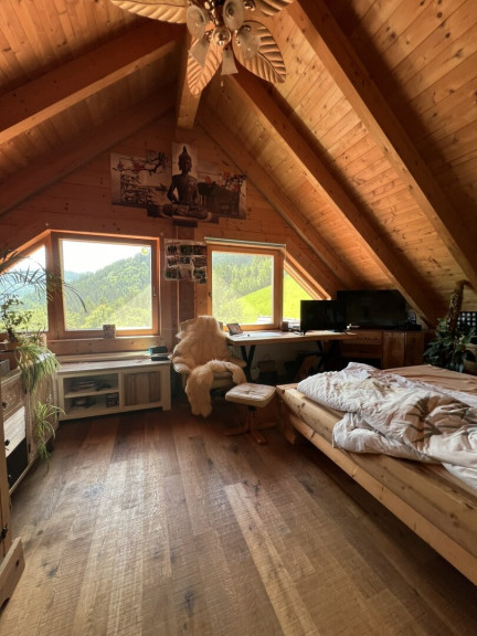 Das Herzstück dieser Anlage ist das gemütliche Blockhaus mit 136 m² Wohnfläche, das sich harmonisch in die Landschaft einfügt. Genießen Sie die sonnigen Tage auf der großzügigen Terrasse und erleben Sie gemütliche Abende am Kaminofen. Die Pelletsheizung sorgt dabei stets für wohlige Wärme. Der liebevoll angelegte Garten mit vielen Streuobstbäumen lädt zum Verweilen ein und bietet Raum für Ihre eigenen Gartenprojekte.