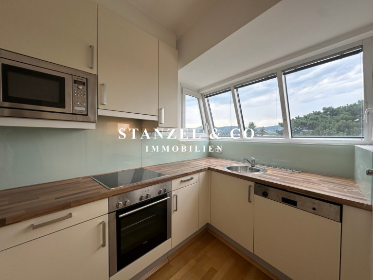 3. DG: Hier befindet sich das 49m² große, loftartige südwestseitige Wohnesszimmer mit großer Panoramaglasfront und einer anschließenden südseitigen 6m² großen Terrasse. Die große Panoramaglasfront bietet einen traumhaften Fern-& Weitblick. An die Küche schließt die 13m² große nordseitige Terrasse an - von dieser hat man einen traumhaften Blick Richtung Weinberge und Kahlenberg. Die Küche ist mit Ceranfeld, Backrohr, Kühlgefrierkombination, Geschirrspüler, Mikrowelle und Dunstabzug versehen. Weiters gibt es ein 13m² großes südseitiges Schlafzimmer mit anschließender 7m² großer Terrasse. Das Badezimmer verfügt über ein Fenster, eine Badewanne, einen Doppelwaschtisch mit Unterschrank, Spiegel & Beleuchtung, Handtuchtrockner und einer elektrischen Entlüftung. Das WC mit Waschbecken, Fenster, Spiegelschrank und elektrischer Entlüftung ist separat.