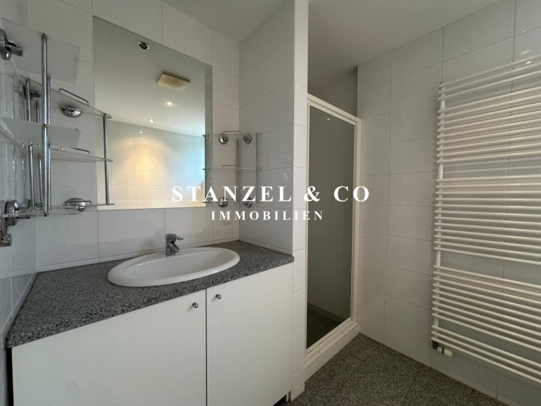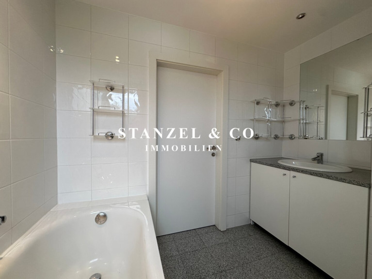 2. DG: Auf dieser Ebene befinden sich die beiden 13m² großen Schlafzimmer. Das 13m² große Schlafzimmer verfügt über einen Einbauschrank und eine anschließende 27m² große Terrasse mit Blick Richtung Kahlenberg. Das zweite 13m² große Schlafzimmer ist südwestseitig ausgerichtet ebenso wie die 10m² Südwestterrasse. Das Badezimmer mit Fenster ist mit einer Dusche, Wanne, Spiegel, einem Waschtisch mit Unterschrank, Handtuchtrockner und einer elektrischen Entlüftung versehen. Das separate WC ist mit einem Waschbecken, Spiegel und einer elektrischer Entlüftung ausgestattet. Unter der Stiege, welche in den oberen Bereich der Wohnung führt, befindet sich ein Abstellraum mit Waschmaschinenanschluss.