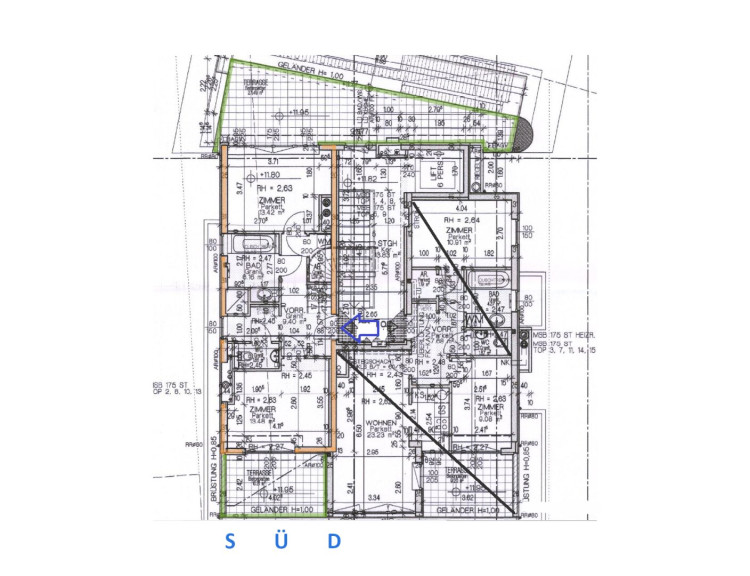 ( Vorzimmer, Wohnesszimmer, Küche, 3 Schlafzimmer, 3 Südterrassen, 2 Nordterrassen, 2 Bäder mit Wanne, AR, 2 WCs, Kellerabteil & Garage möglich )