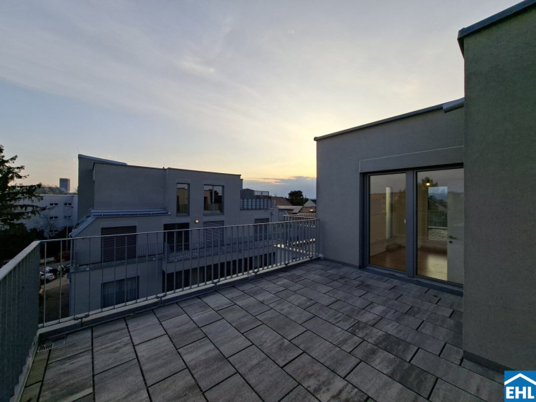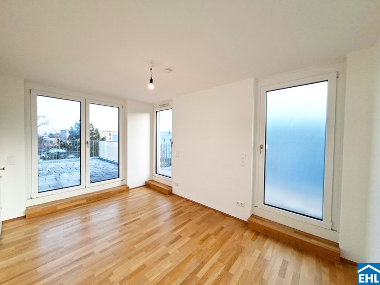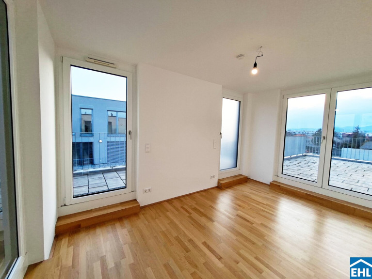 Diese 2-Zimmerwohnung befindet sich im 2. Dachgeschoss und unterteilt sich in ein geräumiges Wohnzimmer mit abgegrenzter Küche, ein ruhiges Schlafzimmer, ein Badezimmer mit Dusche, WC und Waschmaschinenanschluss, sowie einen Vorraum. Das Highlight der Wohnung bilden die 3 Terrassen, welche jeweils vom Wohn-, Schlaf- und Badezimmer aus begehbar sind.