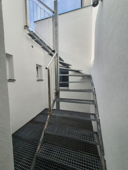 Die Wohnung verfügt über einen Wohnraum mit offener möblierter Küche, 2 Schlafräumen, geräumiges Bad, Abstellraum, Dachterrasse im Obergeschoss mit Abstellraum. (mit Strom- und Wasseranschluss)