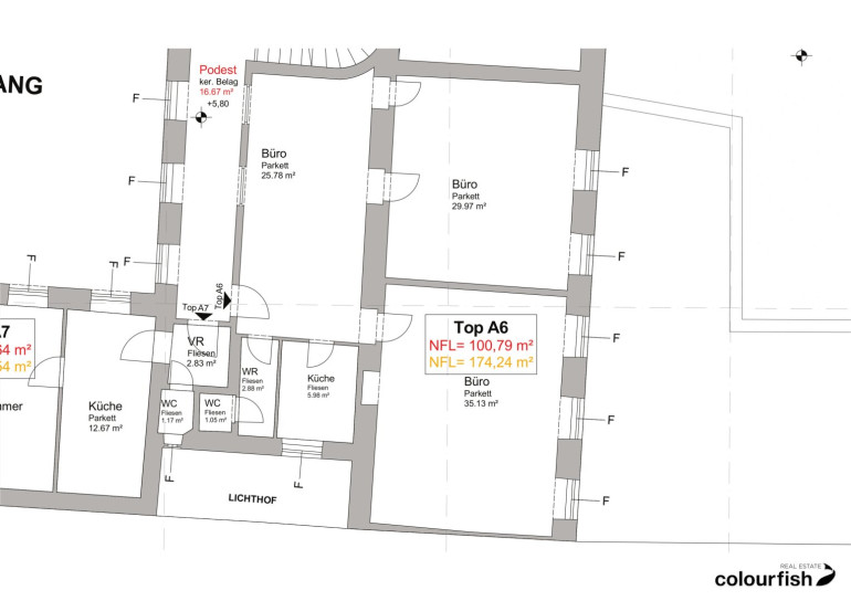 1.OG: Top A6 - ca. 101 m² - netto € 13,00/m²/Monat