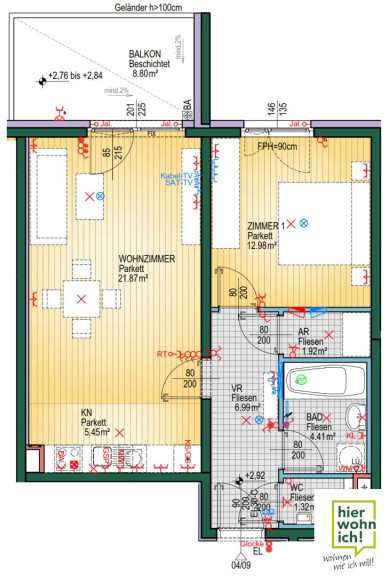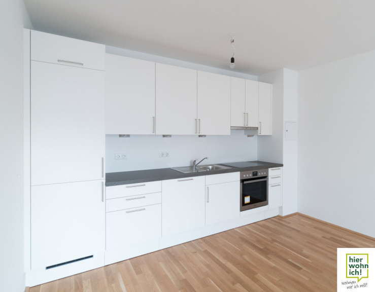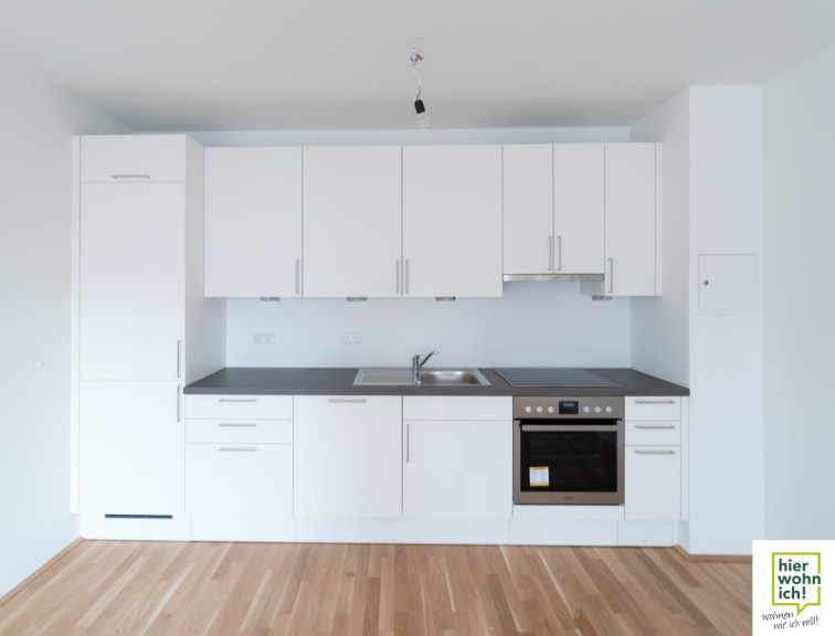 Die Wohnung selbst ist sehr gut aufgeteilt, die 54,94 m² sind optimal nutzbar. Die Wohnküche ist bereits mit einer Küche ausgestattet und hat einen Balkon mit etwa 8,8 m². Zusätzlich hat die Wohnung ein Kellerabteil mit etwa 4,23 m².