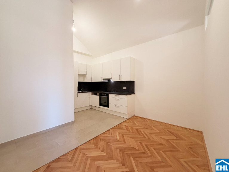 Parkett, Fliesen, Wohnküche / offene Küche, Personenaufzug, Bad mit Fenster, Badewanne, Dusche