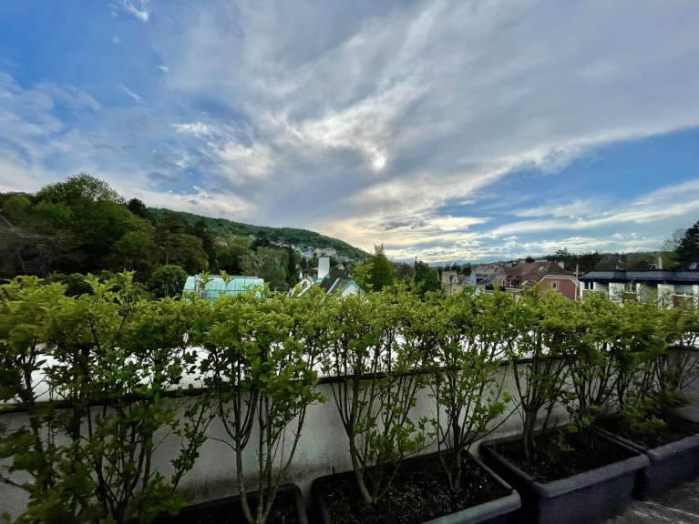 Lichtdurchflutete Dachgeschosswohnung mit 38m2 Terrasse und Fernblick ins Grüne