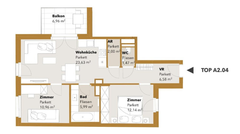 Jede Wohnung ist nicht nur mit einer Freifläche ausgestattet, sondern weißt auch hochwertige Materialien als auch Ausstattung aus: