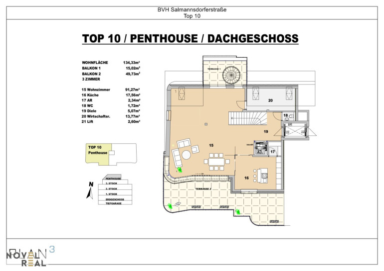 Die Maklergebühr ist ausschließlich bei Zustandekommen eines gültigen Rechtsgeschäfts fällig und vom Käufer an Novel Real Immobilien GmbH zu zahlen. Es wird ausdrücklich auf die Nebenkostenübersicht hingewiesen. Bei den Visualisierungen und Abbildungen der Immobilie (insbesondere von Inneneinrichtungen) kann es sich um Symbolfotos bzw. fototechnisch optimierte Fotos handeln. Die in diesem Exposé veröffentlichten Inhalte und Fotos unterliegen dem österreichischen Urheberrecht. Jede Vervielfältigung, Bearbeitung, Verbreitung und jede Art der Verwendung bedürfen der vorherigen schriftlichen Zustimmung der Novel Real Immobilien GmbH.