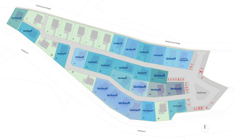Das direkt entlang des Kreisbaches liegende großzügige Grundstück bietet 34 aktiven Kleingärtnern Platz, um dem hektischen Treiben des Alltags entfliehen zu können.