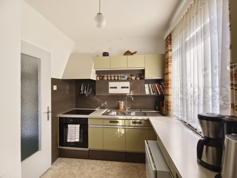 Lage und Ausblick: Das Haus befindet sich in erhöhter Lage und bietet einen Panoramablick auf die umliegende Landschaft. Die erhöhte Position sorgt nicht nur für eine idyllische Umgebung, sondern auch für Privatsphäre und Erholung pur. Beide Wohneinheiten sind separat zugänglich, was ideale Bedingungen für zwei Parteien schafft.