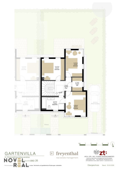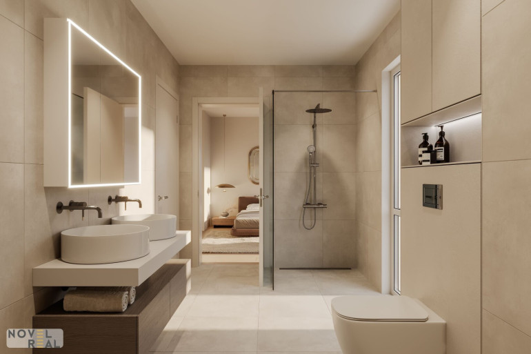 Ihre privaten Rückzugsorte umfassen drei perfekt geplante Zimmer à 14 m², die reichlich Platz für Stauraum bieten. Ein Zimmer ist als Master Bedroom mit einem integrierten Bad und einem Schrankraum ausgestattet und gewährleistet Privatsphäre und Komfort.