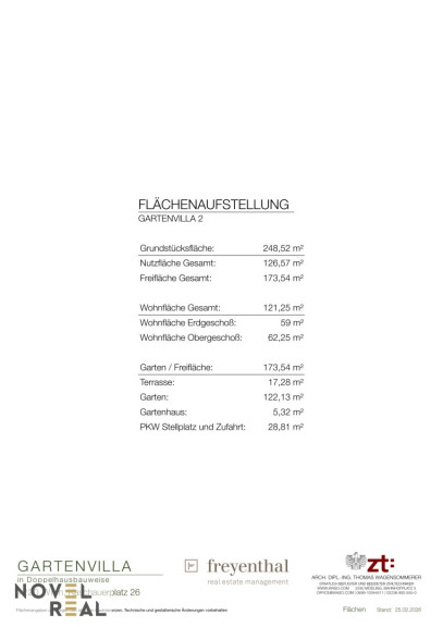 Flächenaufstellung Gartenvilla