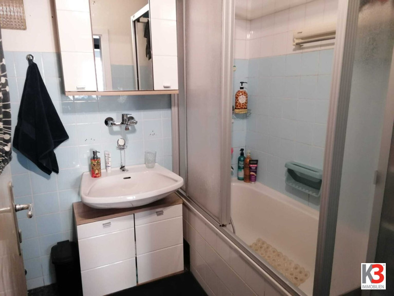 Fliesen, Laminatboden, Parkett, Zentralheizung, Einbauküche, Südbalkon, Dusche, Garage, Parkplatz
