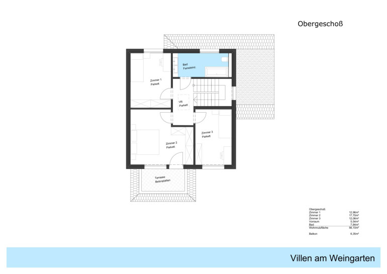 Das Obergeschoß bietet 3 geräumige Schlafzimmer, davon das Elternschlafzimmer mit direktem Zugang auf den Balkon und herrlichem Blick in die umliegenden Weingärten. Im zentral begehbaren Bad sind Badewanne, Waschbecken und Toilette vorgesehen. Im darüber befindlichen Spitzboden besteht unheimlich viel Stauraum für die nicht alltäglichen Dinge des Lebens.