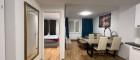 Wohnküche: Das einladende Wohnzimmer ist mit einer praktischen Eckküche ausgestattet, die sich harmonisch in den Raum integriert. Hier finden Sie alles, was das Köcheherz begehrt – modern, funktional und stilvoll.