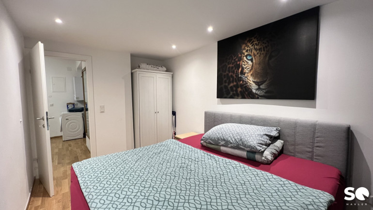 Schlafzimmer: Das großzügige Schlafzimmer bietet genügend Platz für ein Doppelbett sowie einen geräumigen Kleiderschrank. Ein Ort zum Entspannen und Träumen.