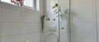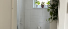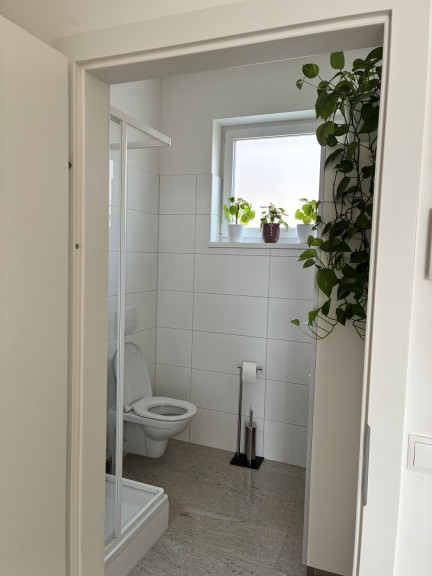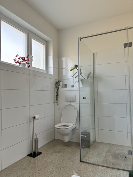 - Gäste-Badezimmer mit Dusche, WC und Waschbecken